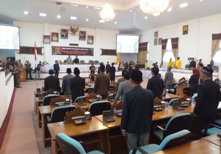 Rapat Paripurna yang digelar Ruang sidang setempat dipimpin Wakil Ketua DPRD Lamteng, Riagus Ria, dan dihadiri para Anggota serta Sekertaris DPRD Lamteng, Syamsi Rolly, Kamis (02/05/2019).