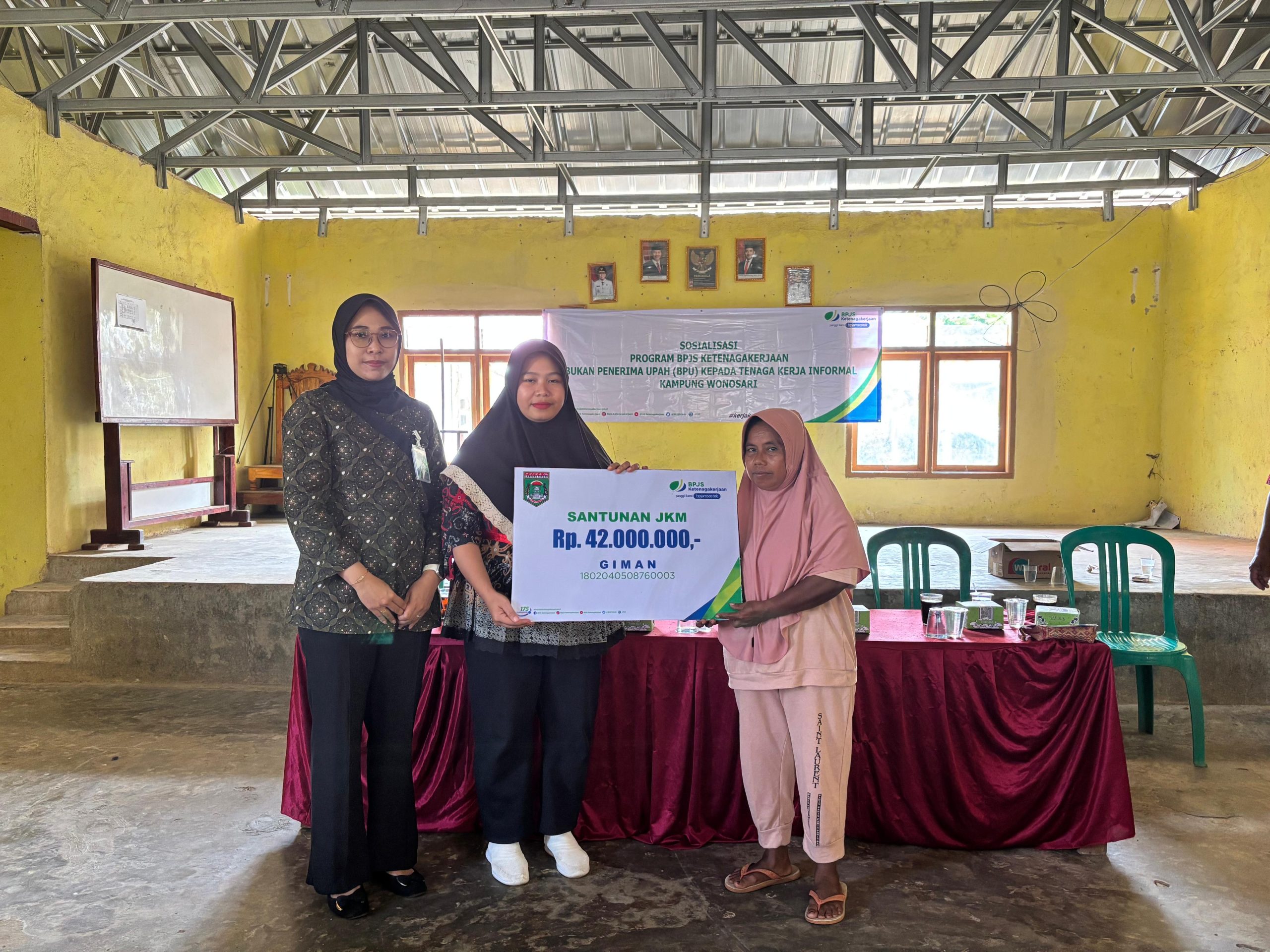 Bandar Lampung, Metropolis – BPJS Ketenagakerjaan Lampung Tengah melakukan penyerahan santunan kematian kepada ahli waris peserta BPJS Ketenagakerjaan di Balai Kampung Wonosari, Kamis, 7 Agustus 2025.