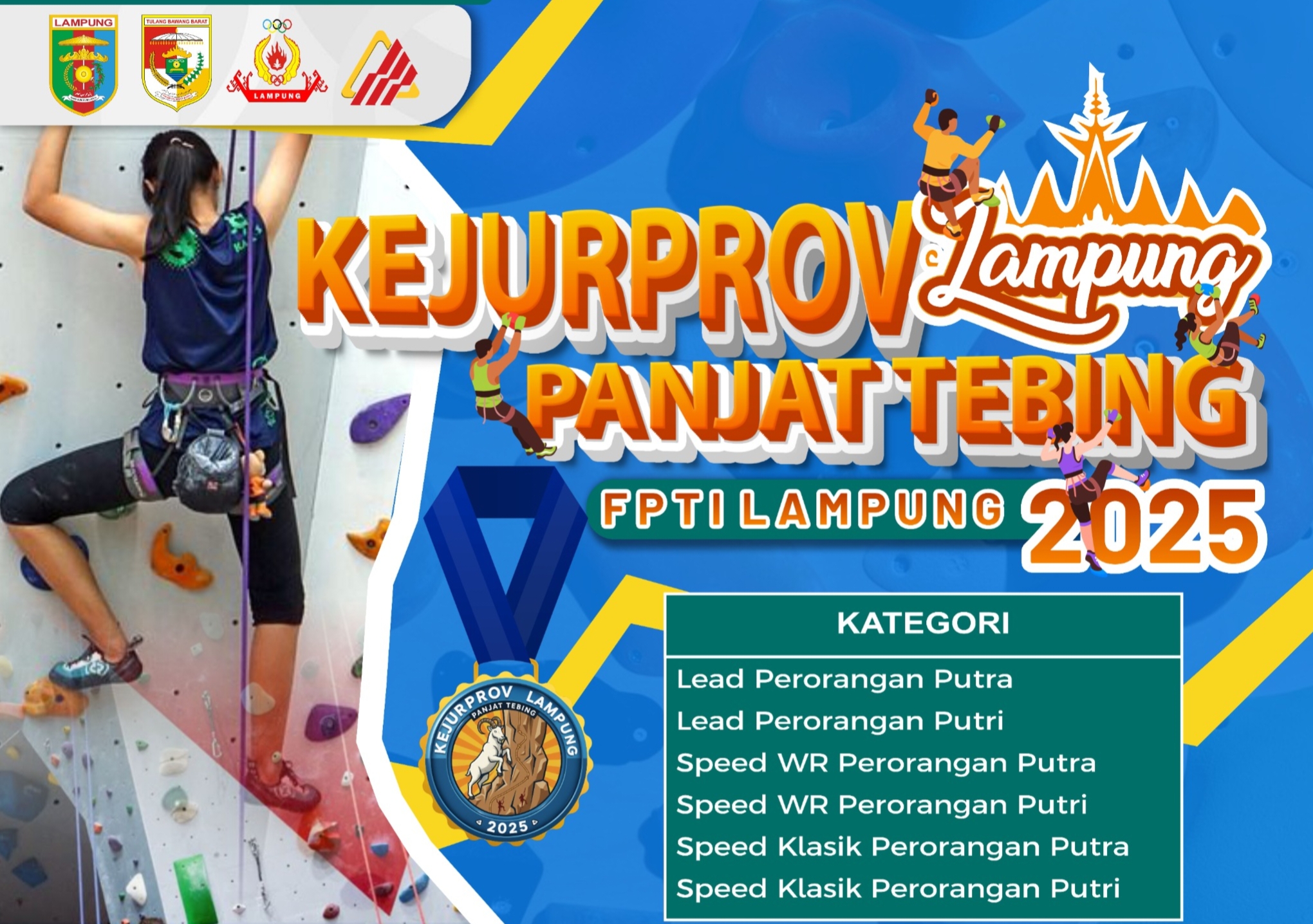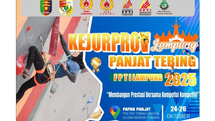 Bandar Lampung, (Metropolis) – Federasi Panjat Tebing Indonesia (FPTI) Pengprov Lampung akan mengadakan Kejurprov 2025 pada tanggal 24-26 Oktober 2025 di Tulangbawang .
