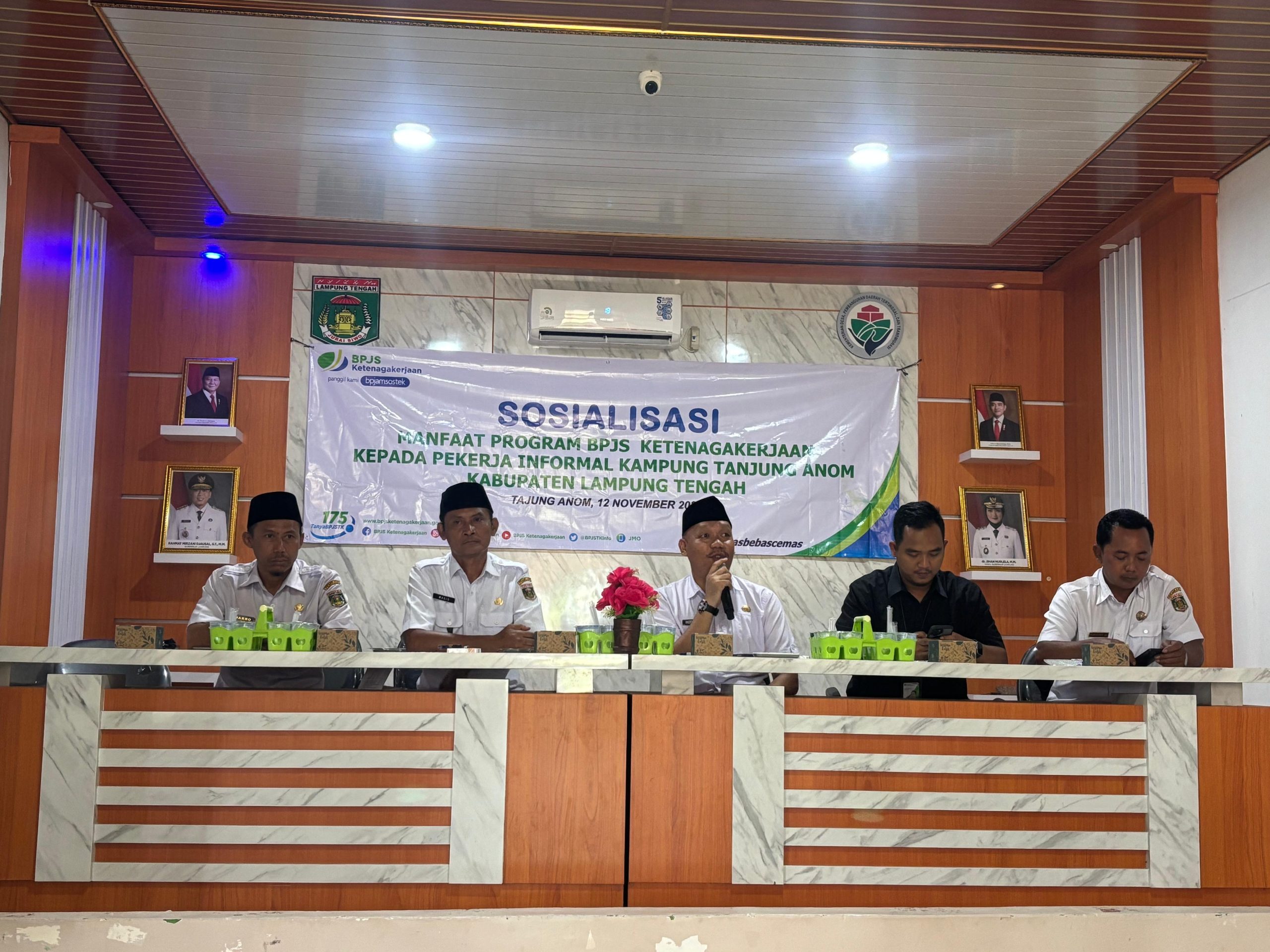 Lampung Tengah, Metropolis – Dalam rangka memperluas pemahaman masyarakat terhadap pentingnya perlindungan jaminan sosial bagi pekerja, BPJS Ketenagakerjaan Cabang Lampung Tengah menggelar kegiatan sosialisasi program BPJS Ketenagakerjaan kepada masyarakat Kampung Tanjung Anom, Kabupaten Lampung Tengah (Rabu, 12/11/25).
