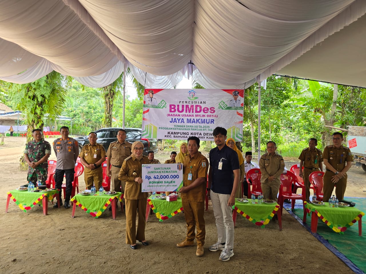 Way Kanan, Metropolis — Suasana haru menyelimuti balai Kampung Kota Dewa, Kecamatan Bahuga, saat Bupati Way Kanan Ayu Asalasiyah menyerahkan santunan jaminan kematian (JKM) kepada ahli waris almarhum Kepala Kampung Kota Dewa, Romani Saleh.