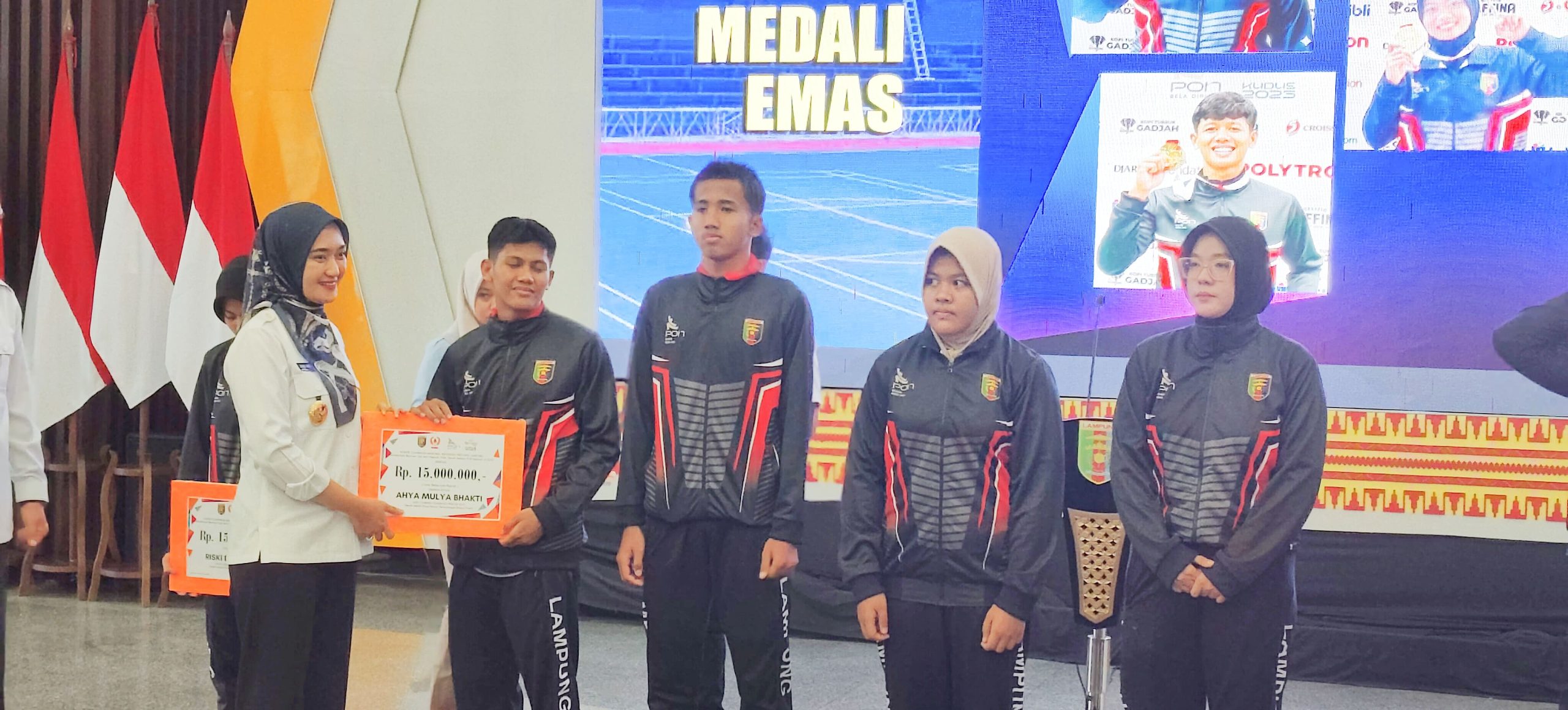 Bandar Lampung, Metropolis – Pemerintahan Provinsi Lampung melalui KONI Lampung memberikan tali asih untuk atlet PON Beladiri peraih medali di Mahan Agung, (26/11/2025).