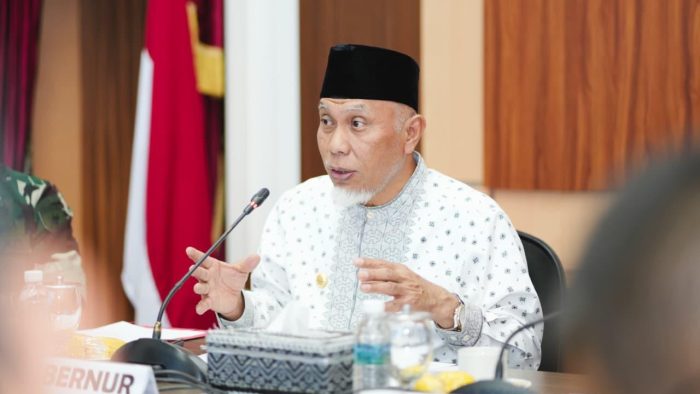 PT. Tirta Investama Pabrik Solok yg diwakili Azra’i dan team sales menyerahkan secara simbolis bantuan produk untuk korban banjir Kota Padang kepada Wali Kota Padang, Fadly Amran di Posko Utama Bencana Palanta Rumah Dinas Wali Kota Padang Jalan A. Yani, Minggu (30/11/2025).