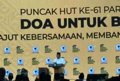 Jakarta, (Metropolis.co.id) – Presiden Prabowo Subianto memberikan pidato dalam acara puncak HUT ke-61 Partai Golkar, Istora Senayan, Jakarta. Prabowo menyindir ada pihak yang gemar mencari kesalahan tanpa memberikan kontribusi.