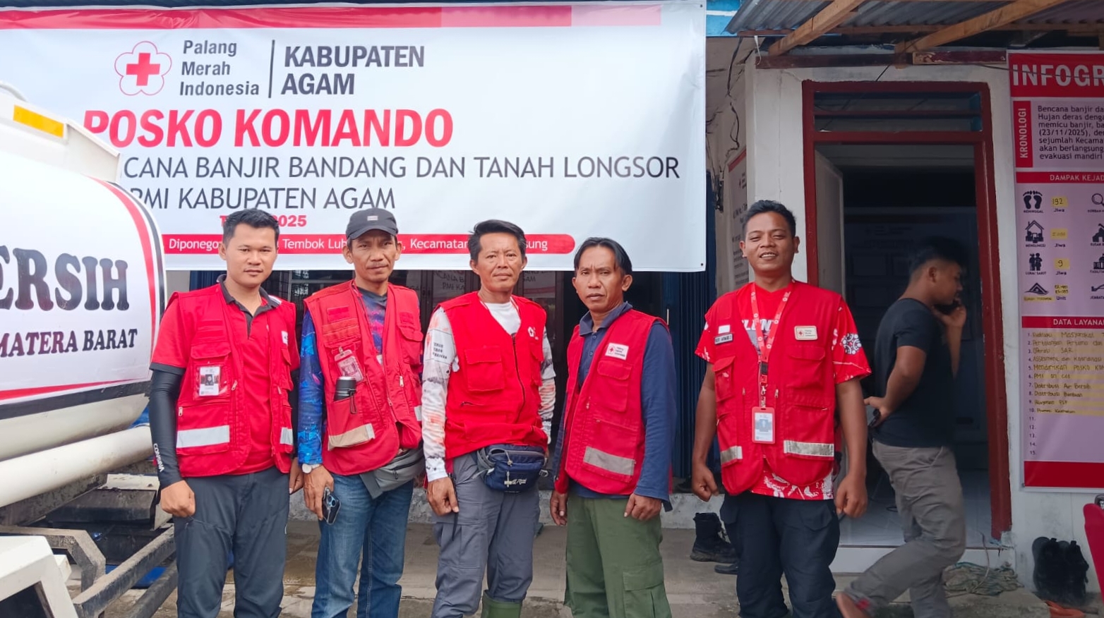 PMI Lampung yang terdiri dari 5 personil sudah bergabung sejak tanggal 14 Desember 2025 di posko jorong Koto Alam, Palembayan, Agam, Sumatera Barat.