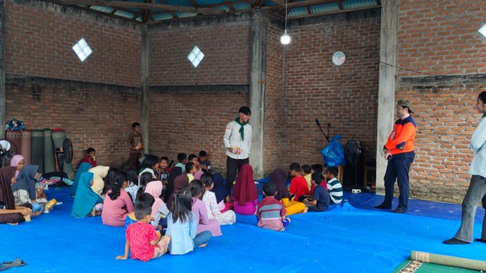 Selain kegiatan bermain, Tim juga memberikan edukasi ringan mengenai kebencanaan dengan bahasa yang mudah dipahami anak-anak. Edukasi ini bertujuan agar anak tidak hanya pulih secara psikologis, tetapi juga memiliki pemahaman dasar tentang cara bersikap ketika terjadi bencana di kemudian hari.