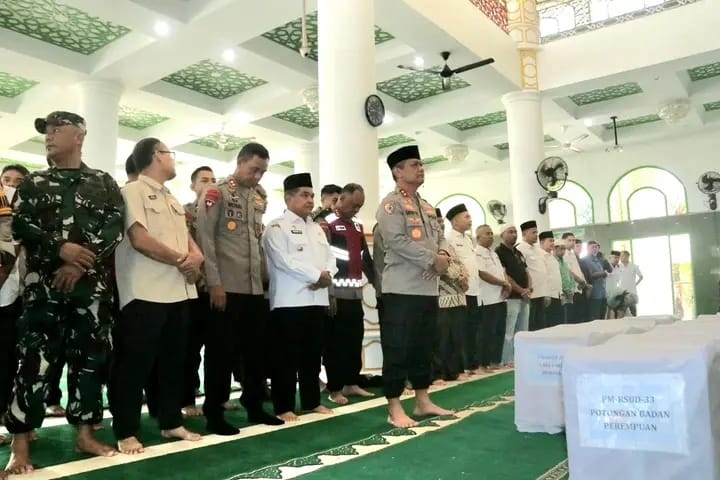 Agam, Metropolis.co.id – Kapolda Sumatera Barat, Irjen Pol Gatot Tri Suryanta, memimpin langsung pelaksanaan sholat jenazah untuk enam jenazah korban bencana hidrometeorologi yang belum teridentifikasi oleh Tim DVI.