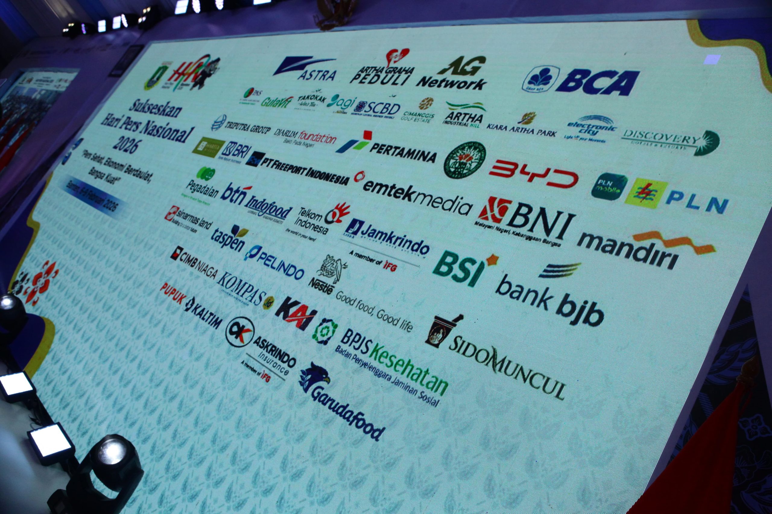 Sejumlah perusahaan dan institusi yang turut mendukung HPN 2026 Banten antara lain PT Astra International Tbk, Artha Graha Peduli, Artha Graha Network, PT Bank Central Asia Tbk, PT Pertamina (Persero), Gabungan Pengusaha Kelapa Sawit Indonesia (GAPKI), Triputra Group, PT Djarum, BYD Motor Indonesia, PT PLN (Persero), PT Surya Citra Media (SCM) Tbk, Harita Nickel, PT Bank Rakyat Indonesia (Persero) Tbk, PT Freeport Indonesia, PT Bank Mandiri (Persero) Tbk, PT Bank Negara Indonesia (Persero) Tbk, PT Bank Tabungan Negara (Persero) Tbk, PT Telkom Indonesia (Persero) Tbk, PT Pegadaian, PT Jaminan Kredit Indonesia (Jamkrindo), PT Indofood Sukses Makmur Tbk, PT Bank Syariah Indonesia (Persero) Tbk, PT Taspen (Persero), Pelindo, Sinar Mas Land, PT Bank Pembangunan Daerah Jawa Barat dan Banten Tbk (Bank BJB), PT Nestle Indonesia, PT Industri Jamu dan Farmasi Sido Muncul Tbk, PT Bank CIMB Niaga Tbk, Kompas.id, PT Kereta Api Indonesia (Persero), BPJS Kesehatan, PT Asuransi Kredit Indonesia (Askrindo), serta PT Pupuk Kalimantan Timur.