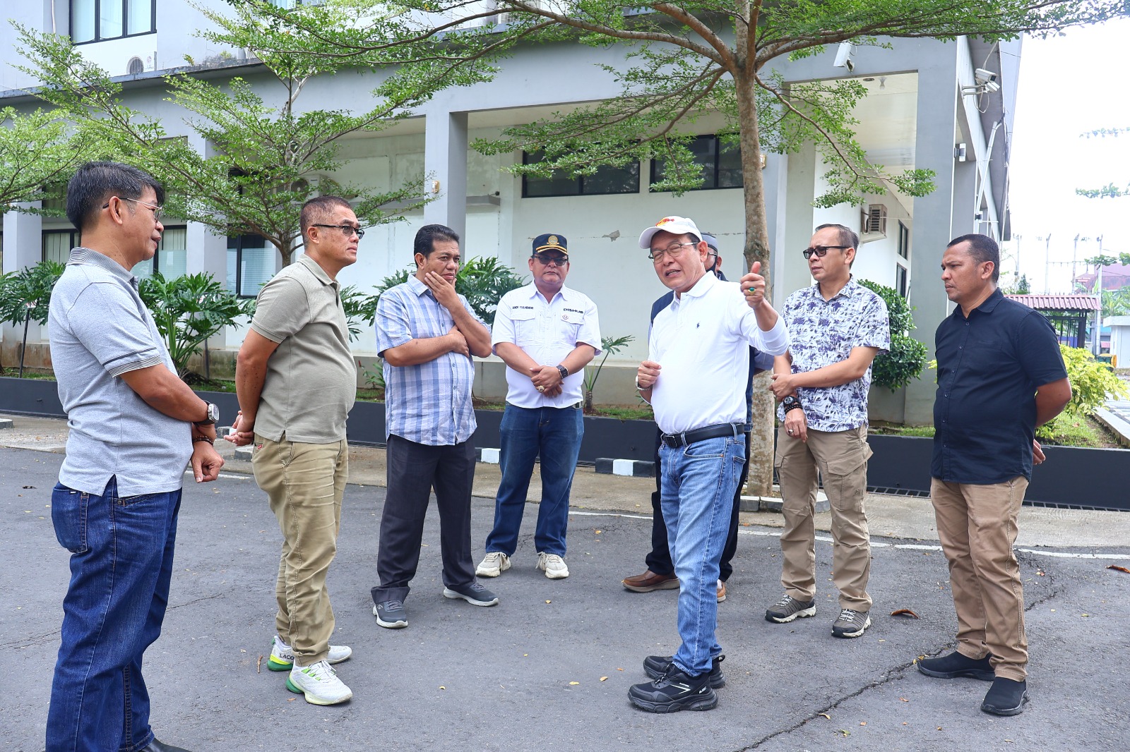 Zulmaeta turun langsung memantau kesiapan lapangan bersama jajaran. Terlihat petugas kebersihan mulai menata taman dan merapikan lingkungan sekitar, sementara personel pemadam kebakaran melakukan penyemprotan menggunakan water cannon untuk membersihkan area utama yang akan digunakan jamaah.
