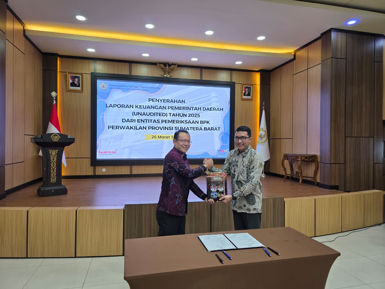 Payakumbuh — Wali Kota Payakumbuh, Zulmaeta, menyerahkan Laporan Keuangan Pemerintah Daerah (LKPD) unaudited Tahun Anggaran 2025 kepada Badan Pemeriksa Keuangan (BPK) Perwakilan Provinsi Sumatera Barat di Padang, Kamis (26/03/2026).