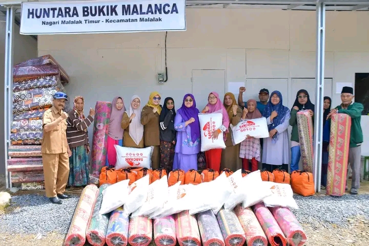Selanjutnya, Ny. Merry juga menyalurkan 20 paket sembako bagi warga penghuni huntara di Nagari Malalak Selatan. Bantuan tersebut diserahkan melalui Wali Nagari Malalak Selatan untuk kemudian didistribusikan kepada masyarakat yang membutuhkan.