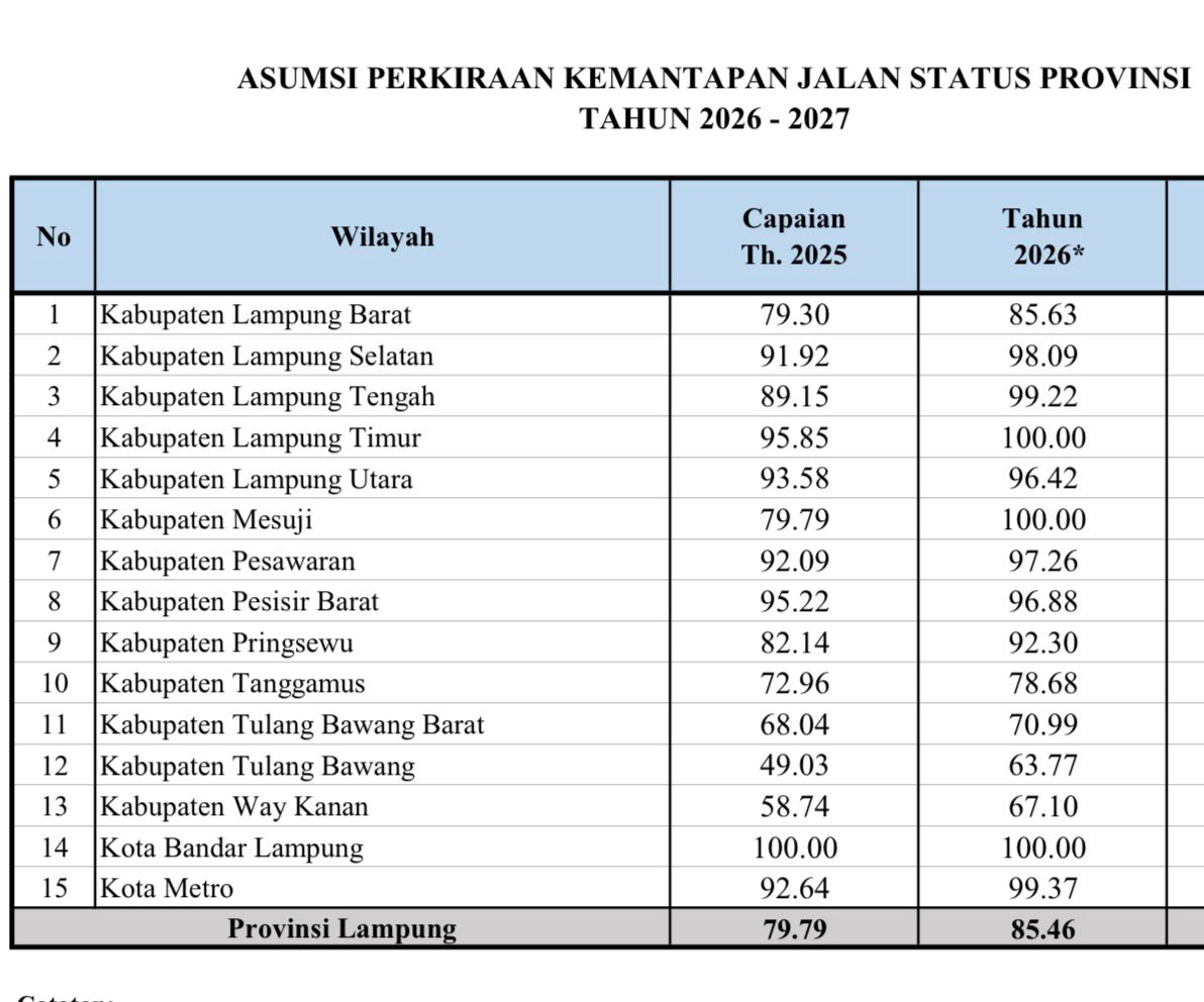Peningkatan signifikan ini menegaskan strategi Pemprov Lampung yang menempatkan jalan provinsi di kabupaten sebagai prioritas utama sudah berada di jalur yang tepat.