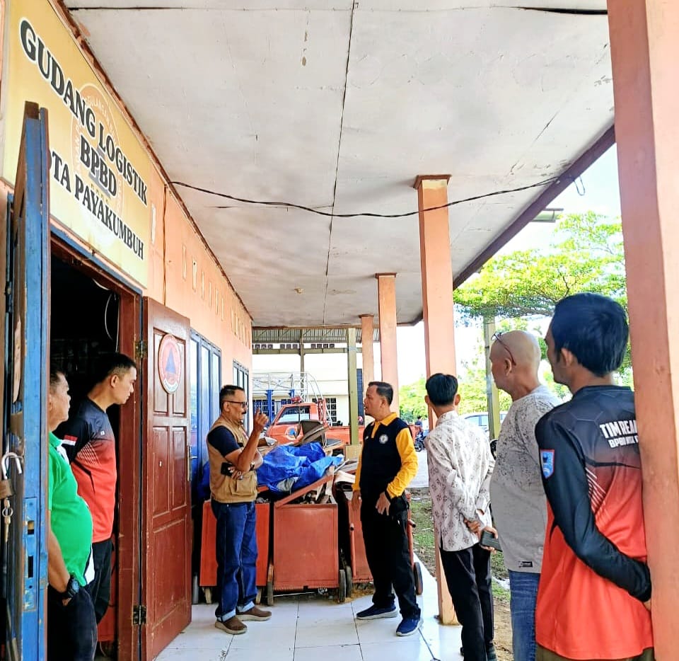 Payakumbuh — Kepala Pelaksana (Kalaksa) BPBD Kota Payakumbuh, Devitra, S.Sos., M.Si., didampingi Kepala Bidang Logistik Hepi, S.IP., serta Kasi Kedaruratan Yoserizal, S.H., melakukan pemeriksaan peralatan kebencanaan dan logistik bencana di Gudang Logistik BPBD Kota Payakumbuh, Padang Kaduduak, Kecamatan Payakumbuh Utara, Jumat (10/04/2026).